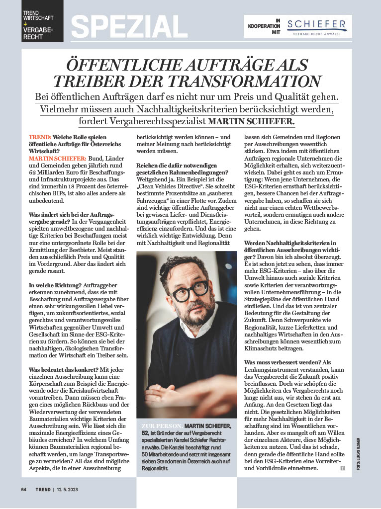 Mehr als 60 Milliarden Euro fließen in Österreich jährlich in öffentliche Aufträge. Wenn man die Macht der Vergabe verantwortungsvoll nutzt, schafft man nicht nur einen Wettbewerbsvorteil für all jene, die bereits nachhaltig und sozial wirtschaften, sondern ermutigt auch andere, die Zukunft dahingehend positiv mitzugestalten.